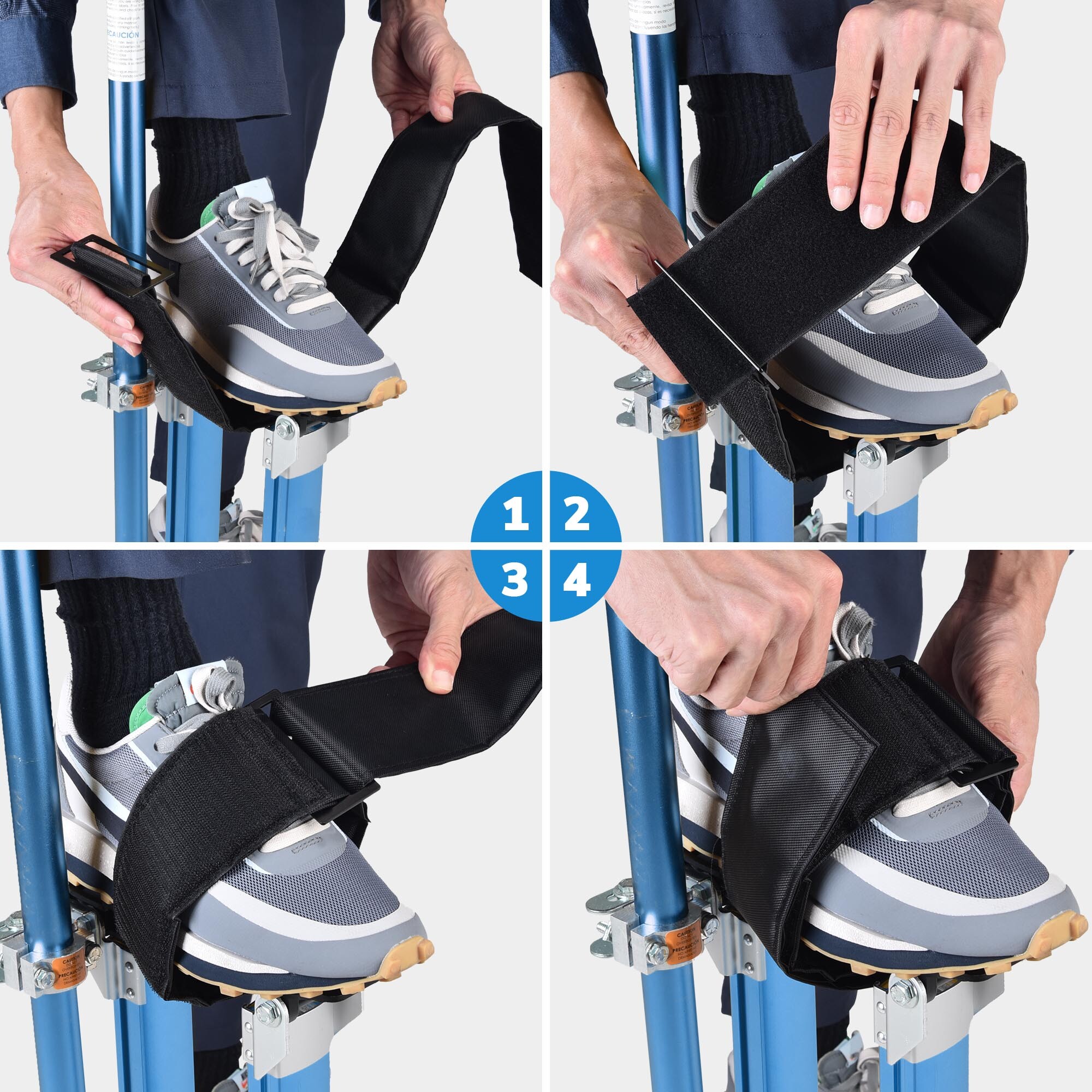 - Quick & Easy Adjustment - Get on and off your stilts quickly with the easy-to-use hook-and-loop fasteners. Customize the fit for optimal comfort and security with fully adjustable straps