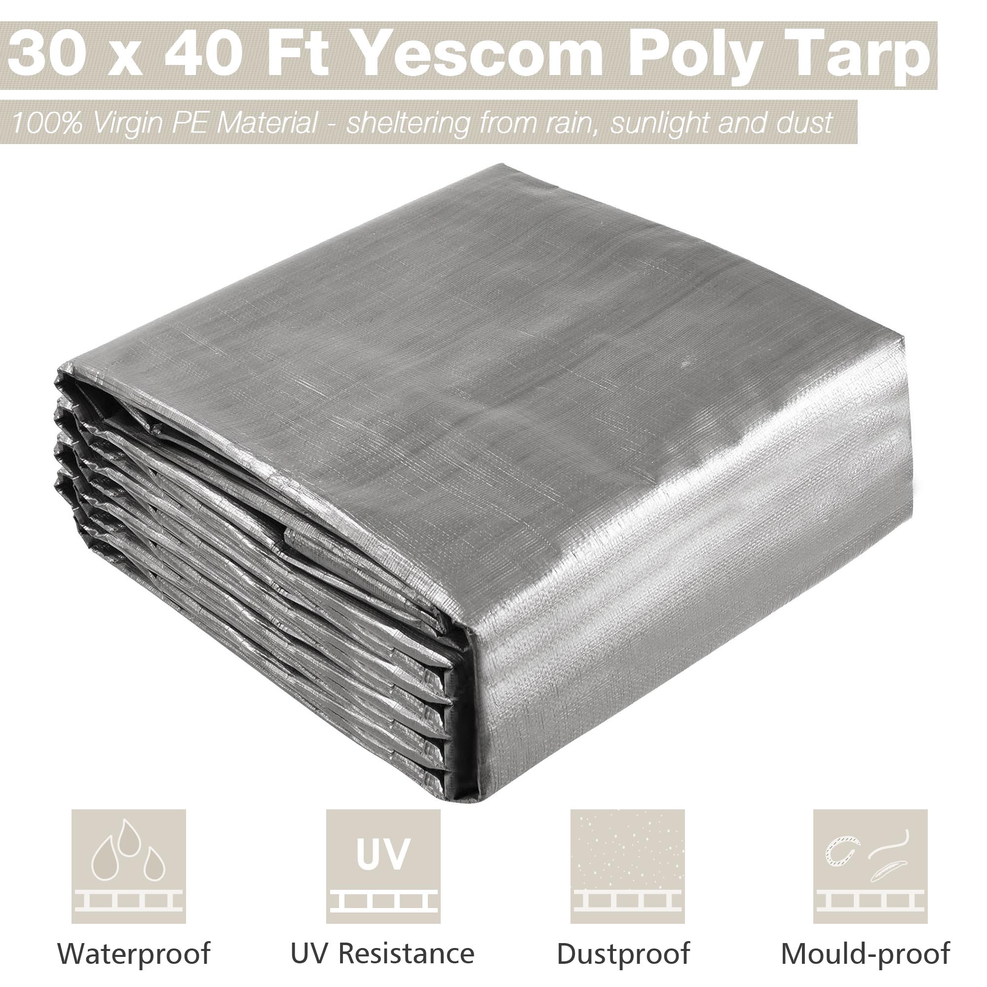 - Strong & Durable Shelter - 30 x 40 ft silver and black poly tarp forms a strong and durable shelter from sunlight, rain and dust, cooler underneath in the summer; Long lifetime up to 3 years, it features good ability of anti-aging for long-time use